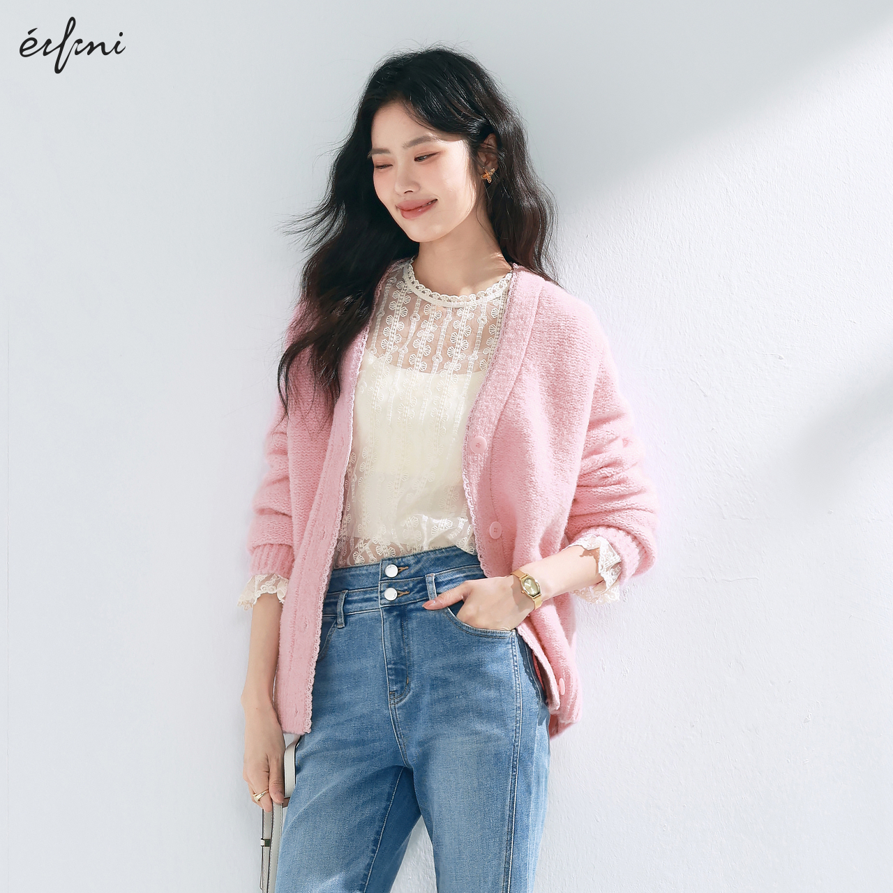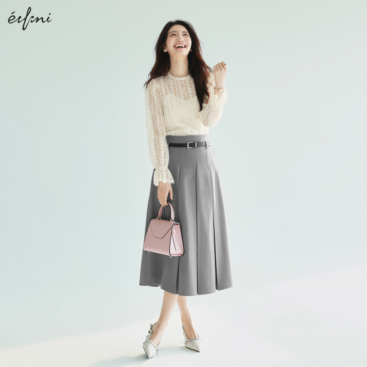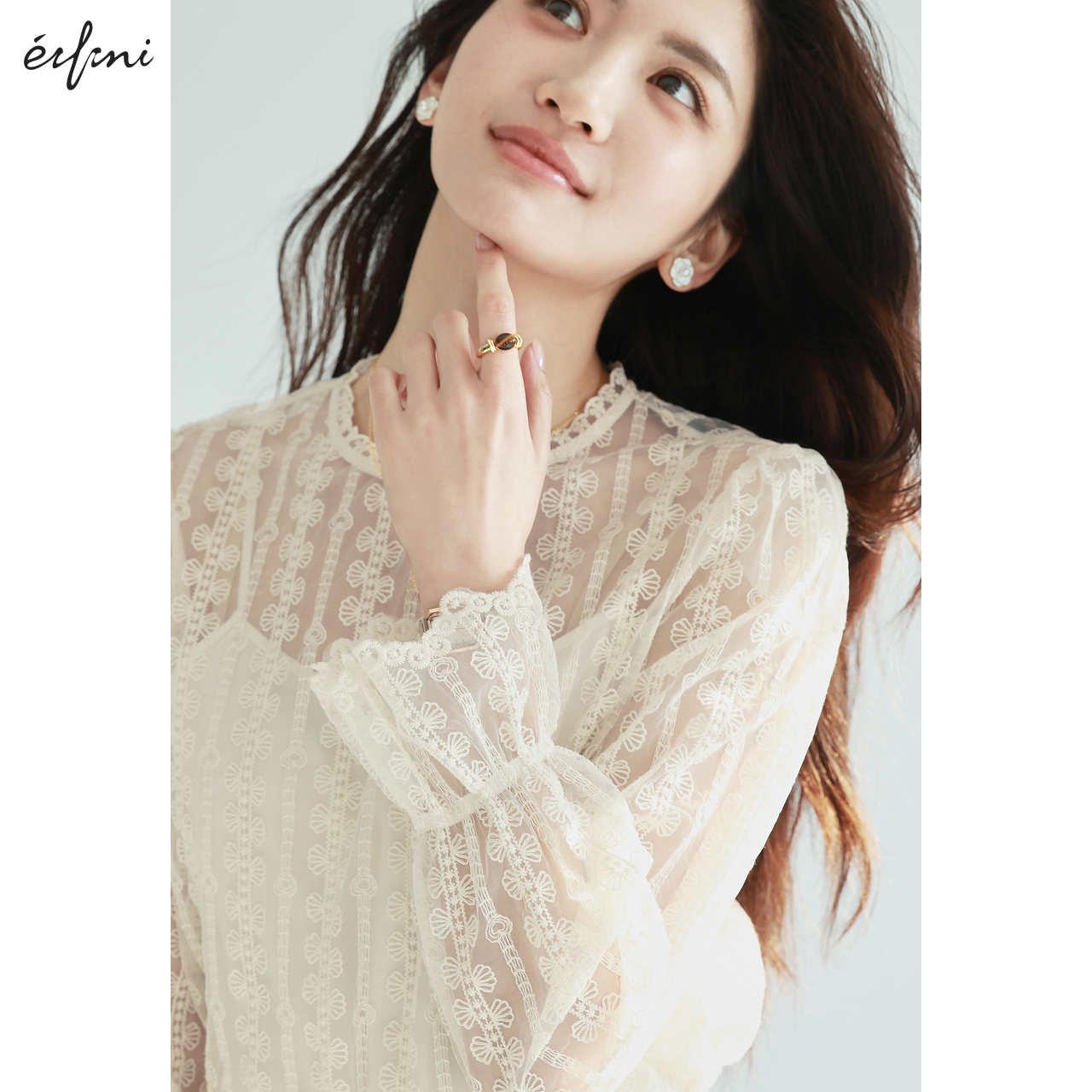 宽松显瘦薄款 新款 轻奢高级上衣 女2025秋装 ELLE白色设计感V领衬衫