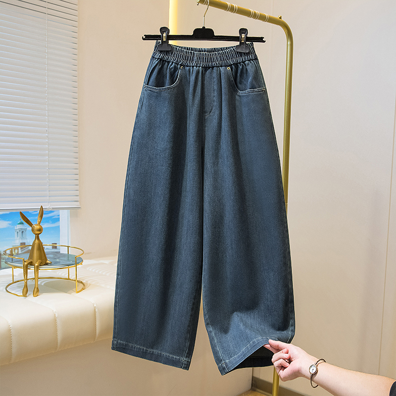 女装 胖MM宽松显瘦减龄休闲九分裤 松紧腰时尚 春季 潮 牛仔哈伦裤 大码