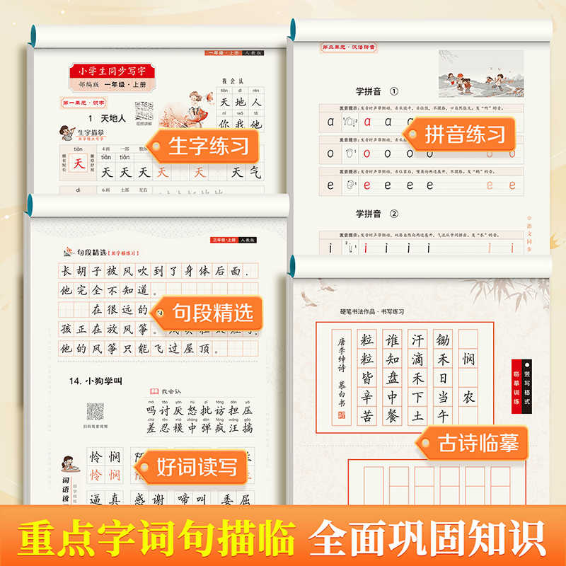 邹慕白2024新版 一二三四五六年级语文同步练字帖写字上册下册语文课本同步字帖蒙纸临摹楷书儿童小学生专用每日一练 人教版