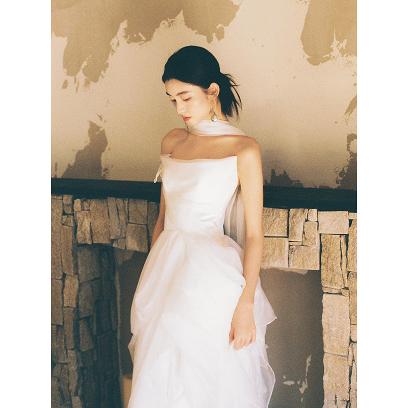 轻婚纱白色抹胸新娘超仙简约礼服裙写真复古森系出门纱小众晨袍女
