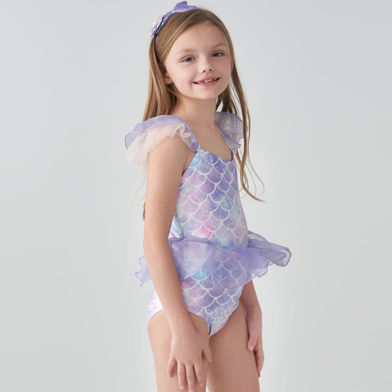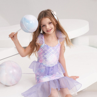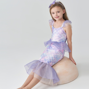 爱慕儿童泳衣女孩10岁人鱼公主女童12岁分身套装 沙滩泳装