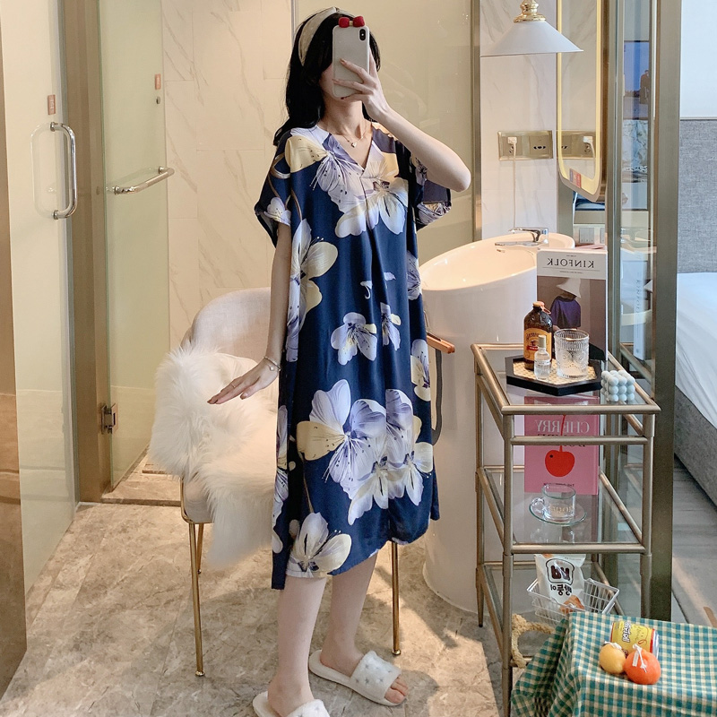夏款 性感人造棉连衣裙日系宫廷风绵绸睡衣家居服 棉绸睡裙女夏薄款