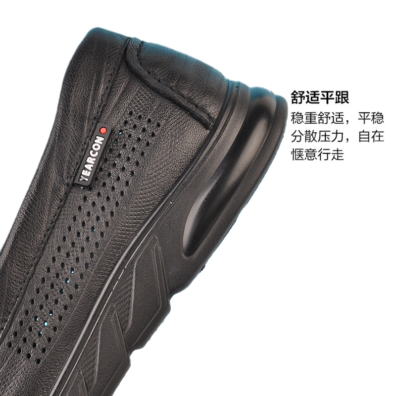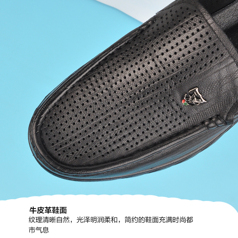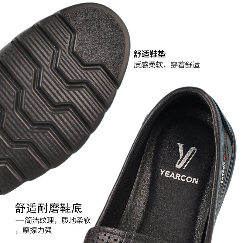 2023夏季 真皮休闲鞋 新款 软底软皮宽版 镂空打孔皮凉鞋 意尔康男皮鞋