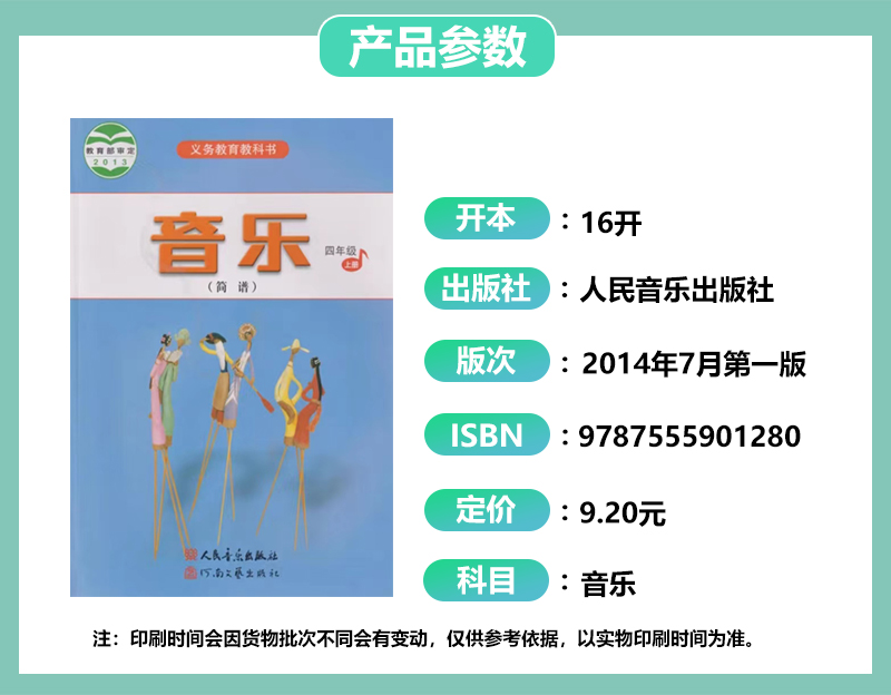 现货2025适用人音版 四年级音乐上册 小学四年级上册音乐 美术书全套2本人音版 美术全套课本教材教科书4上音乐美术 人美版 正版