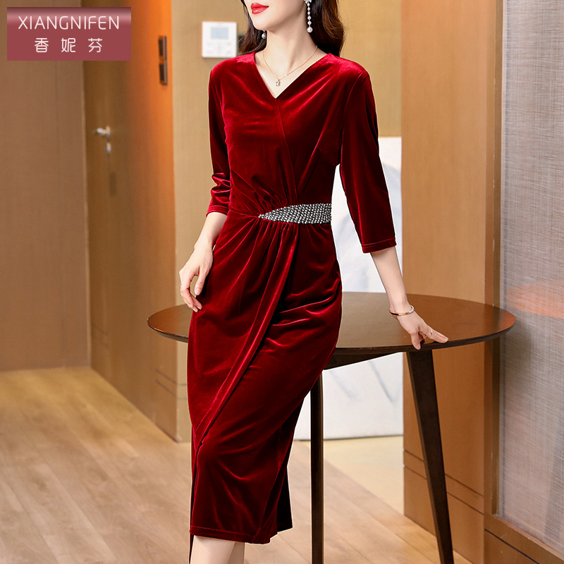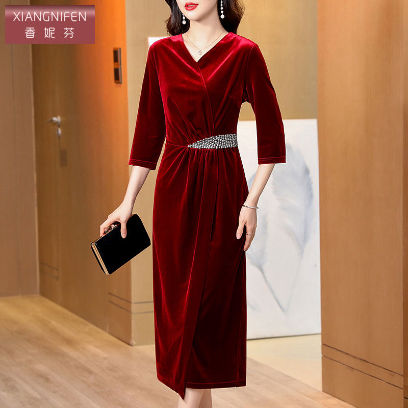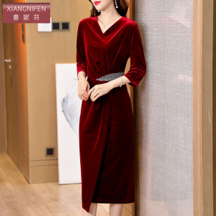 欧货连衣裙女中长款 乔万尼秋装 气质显瘦印花七分袖 修身 商场新款