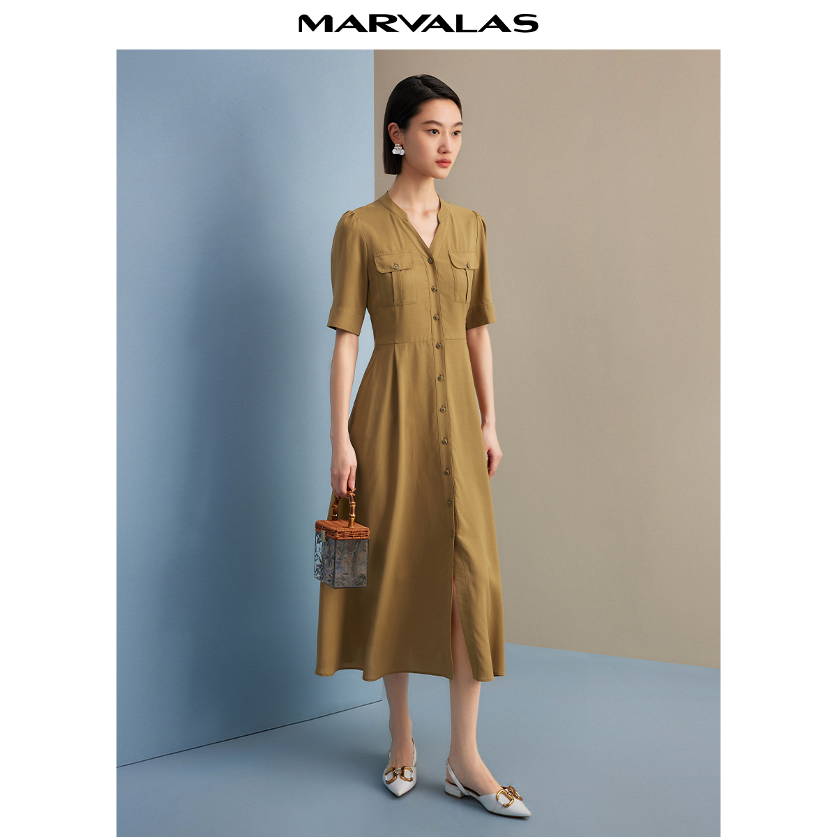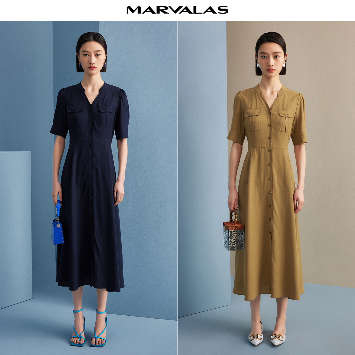 扭结连衣裙气质优雅长裙宴会礼裙 复古V领长袖 韩语琳 法式