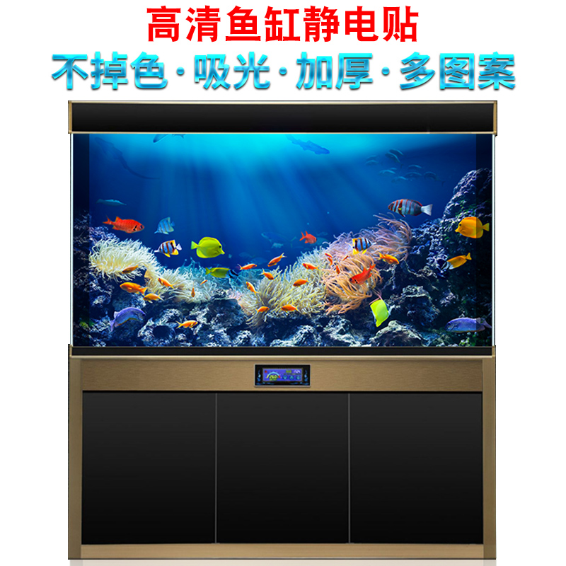 蓝白渐变鱼缸背景贴纸高清3D水族箱海景贴画珊瑚乌龟缸造景静电贴
