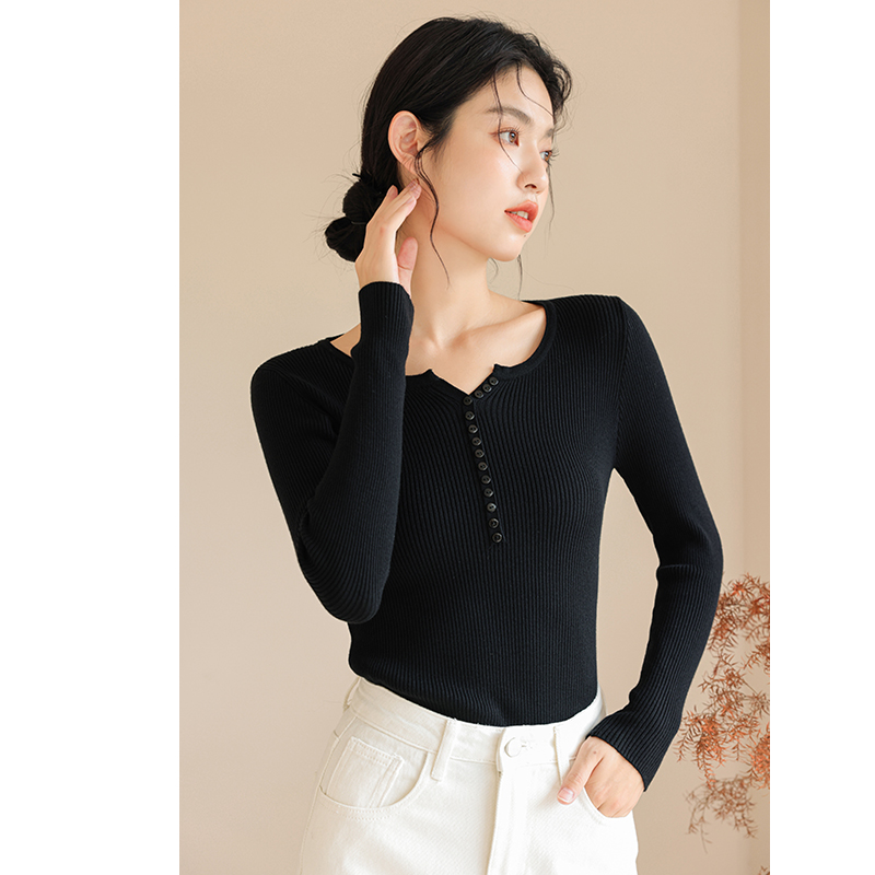 紧身身内搭上衣套头黑色打底衫 长袖 毛衣 女2025秋冬新款 V领针织衫