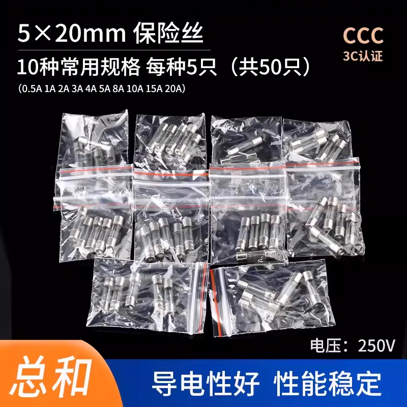 0.5A 保险丝包5 250V 10A 20mm玻璃保险管熔断器6x30