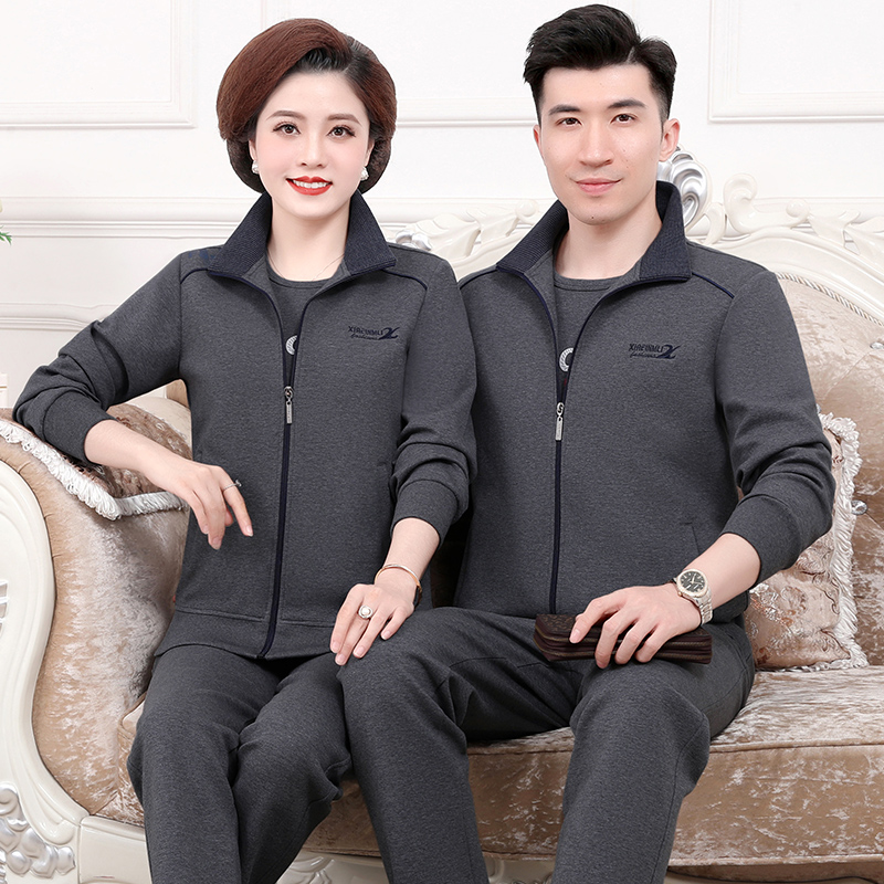 爸爸妈妈跑步运动服 中老年男女休闲套装 中年情侣运动套装 春秋新款