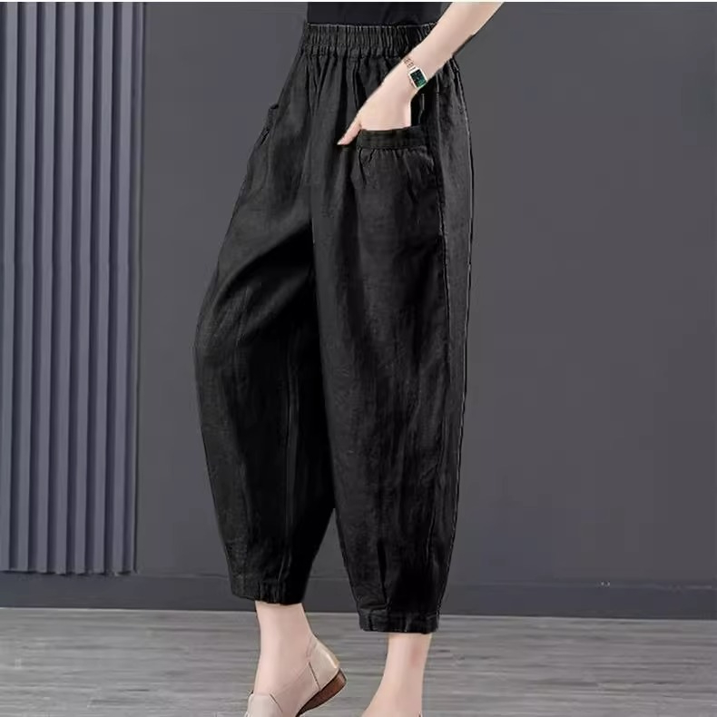 垂坠感宽松哈伦裤 清仓捡漏 松紧高腰灯笼裤 女士夏季 子 棉麻九分裤