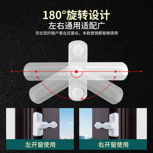 塑钢平开门窗T型锁免打孔窗户锁扣配件限位器安全锁防护锁防盗锁