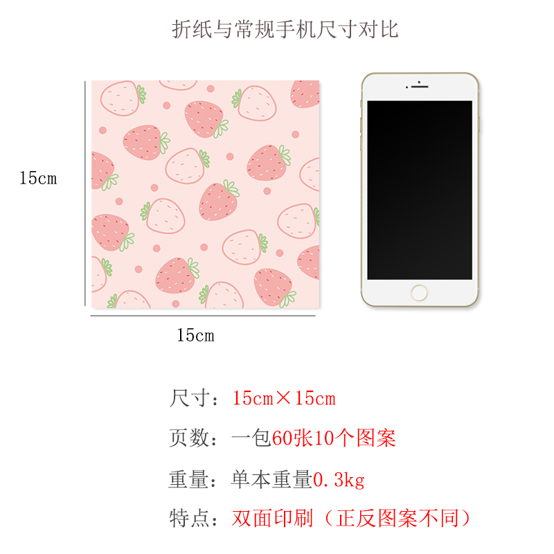 大角色水果系正方形折纸千纸鹤专用纸双面双色女童手工折纸果果乐园清新彩纸好看 叠纸15厘米彩纸纸船手工纸