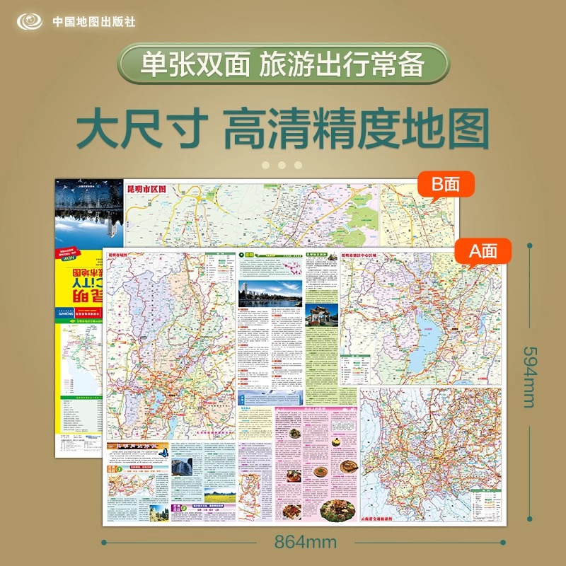 交通旅游住宿生活打卡地指南 2025新版 昆明市地图 594mm 约864 昆明市交通旅游地图 CITY城市地图系列 昆明城市地图 央视网