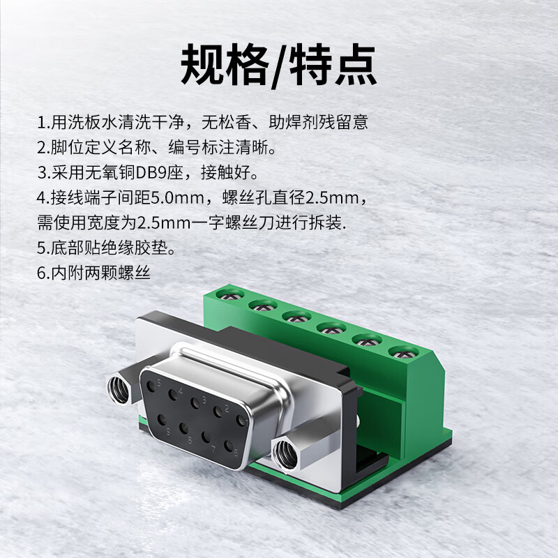 6位ztek端子台9孔母头接线柱 tek力特RS485接线柱RS422接线板RS232接线端子DB9针免焊接头TTL接线器6Pin盒装