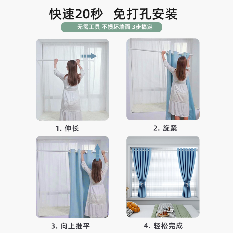 2025新款 全遮光窗帘遮阳布卧室成品阳台隔热防晒窗户简易帘免打孔