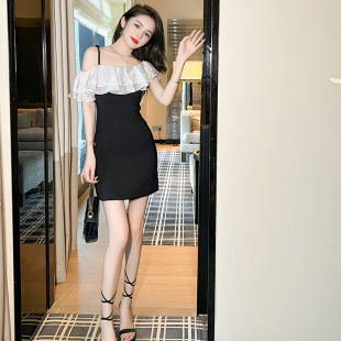 连衣裙女2025夏新款 太平鸟细闪无袖 礼服收腰长裙黑吊带 夜巴黎