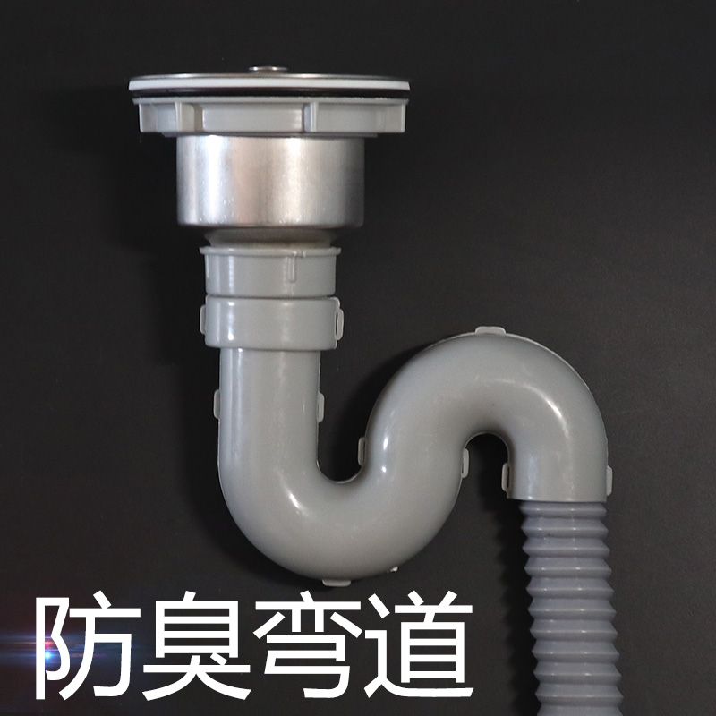 厨房水槽下水管单槽配件排水管防臭防虫S弯道水池洗菜盆下水器