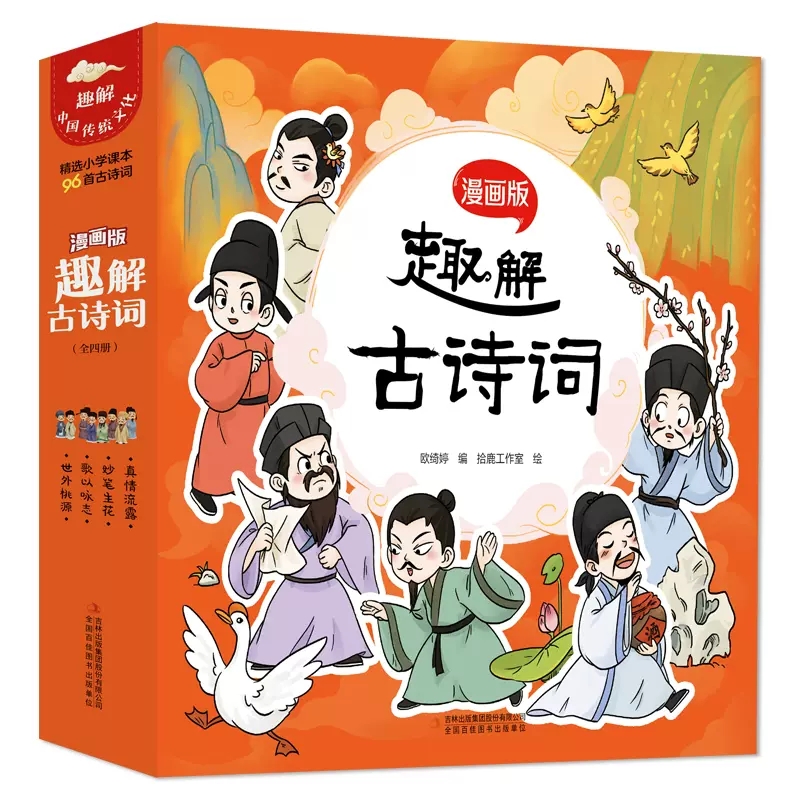 多角度解析唐诗宋词古诗书一二三四五六年级小学生语文课本96首中华传统文化绘本 趣解古诗词漫画版 国学启蒙历史故事 全4册