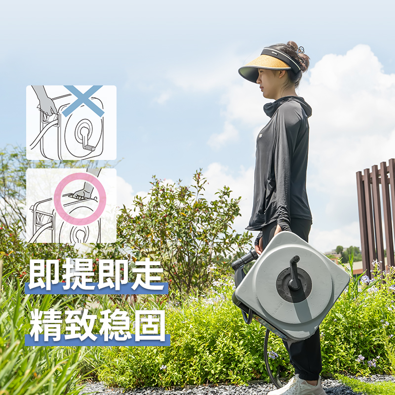 壁挂式 水车花园浇水自动回收收卷器浇花自动伸缩水管收纳架卷管器