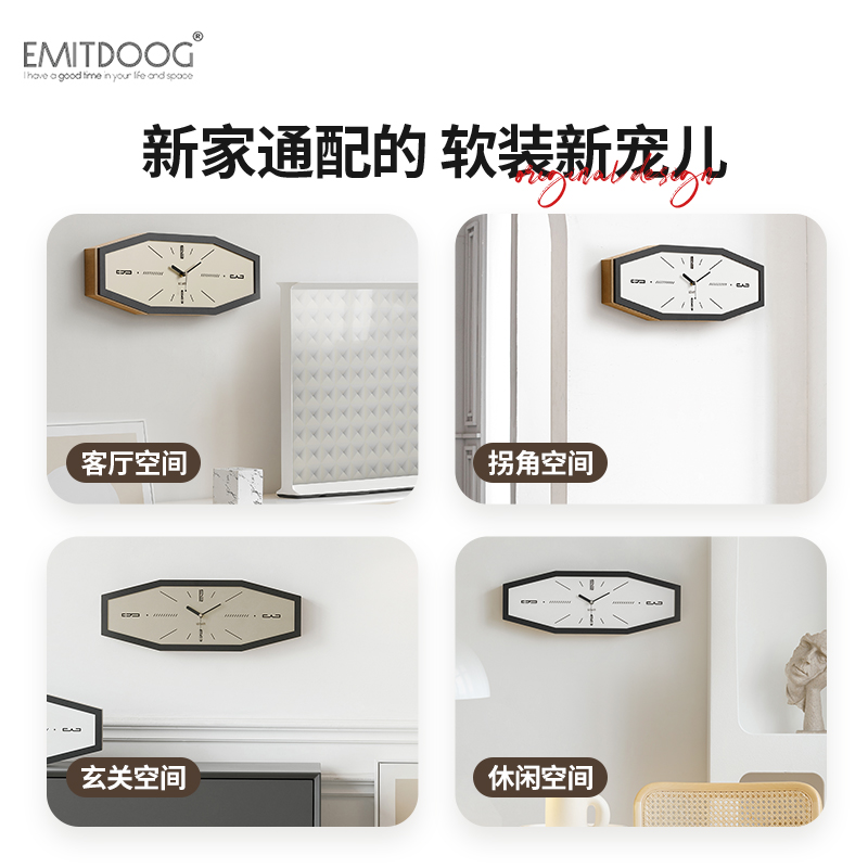 EMITDOOG钟表挂钟现代简约客厅大气复古创意八角时钟挂餐厅高档