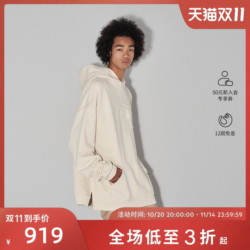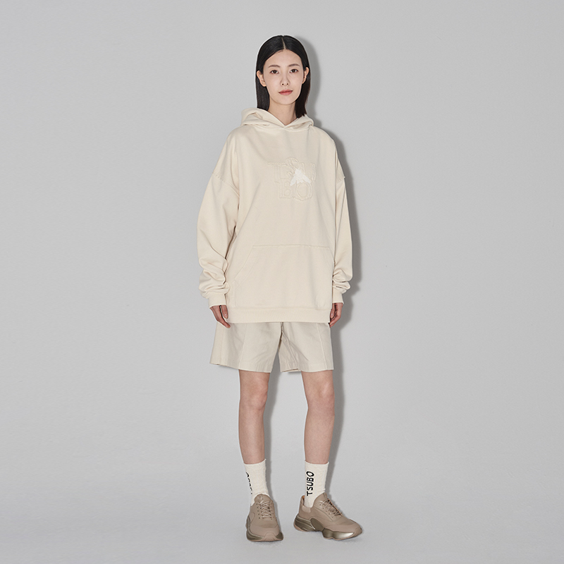 象牙白 破坏主题Logo刺绣连帽卫衣 尺不TSUBO 男女同款