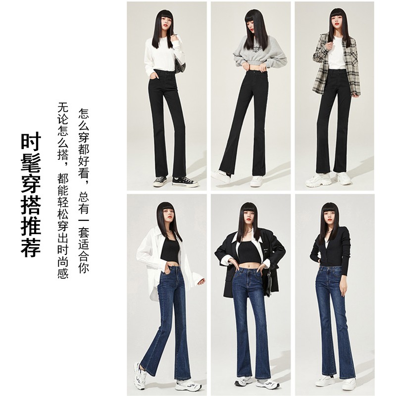 子 弹力显瘦女士高腰喇叭长裤 逸阳不掉色微喇牛仔裤 2025春秋新修身
