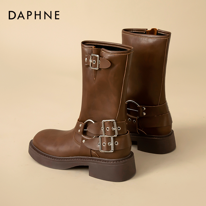 达芙妮西部牛仔靴女春秋2025短靴棕色骑士靴美拉德靴子中筒马丁靴