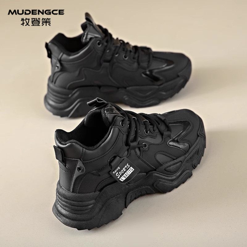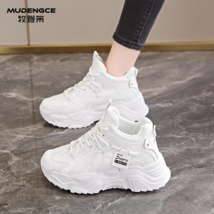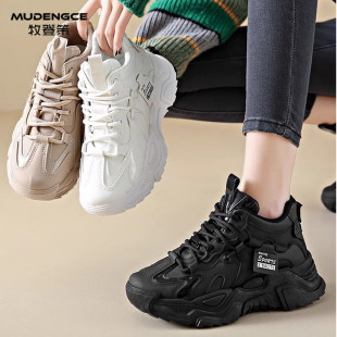 简约圆头轻便休闲鞋 舒适系带运动鞋 女2025新款 高帮软底老爹鞋