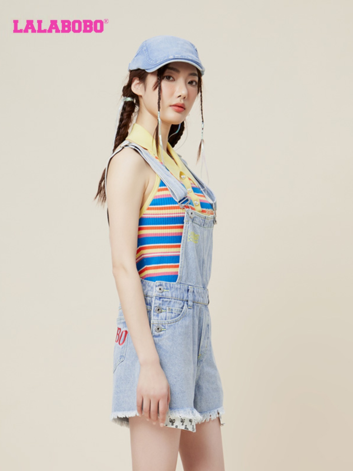 WLZT12 LBCB LALABOBO2023春夏新款 甜系夏日海滨浅蓝牛仔背带短裤