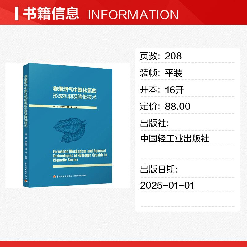 图书籍 社 孙学辉 轻工业 手工业专业科技 编 聂聪 杨松 中国轻工业出版 卷烟烟气中氰化氢 新华书店正版 形成机制及降低技术
