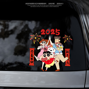 2025新年过年蜡笔小新汽车贴纸侧后窗玻璃电动摩托车身装 饰贴画