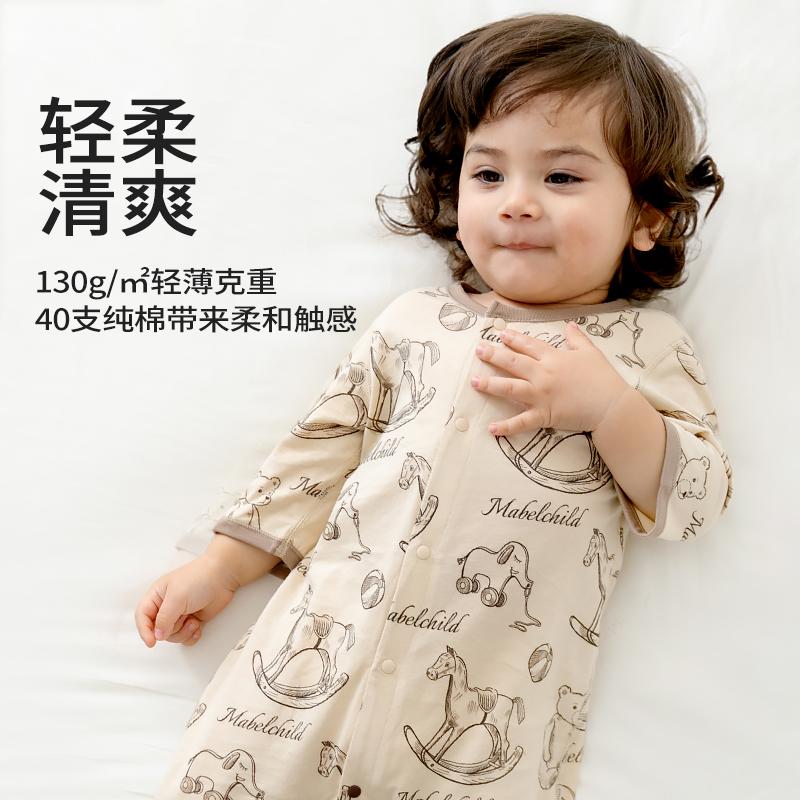 网背空调服春夏宝宝哈衣 纯棉薄款 妙贝亲婴儿连体衣七分袖 长裤