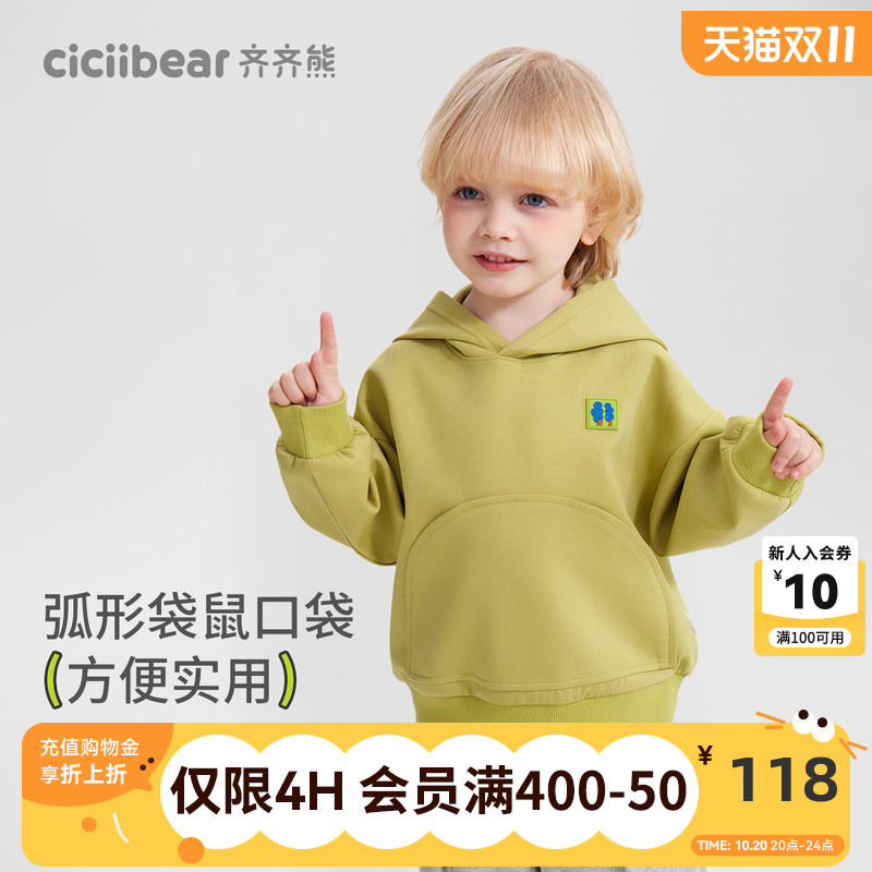 休闲连帽外套童装 齐齐熊宝宝卫衣男童上衣儿童春秋款 春季 空气层