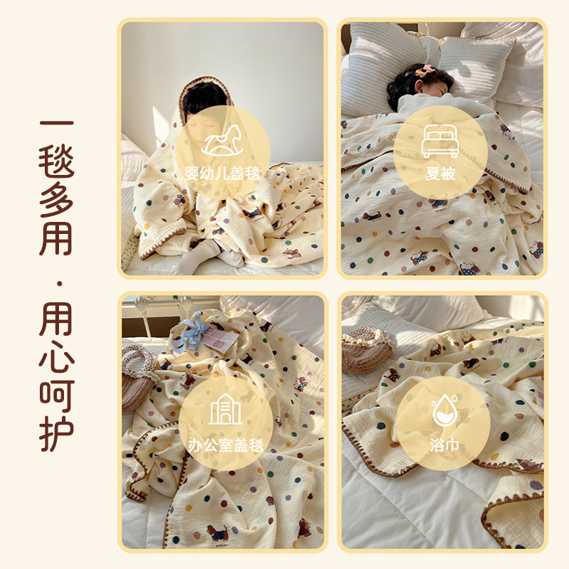 如奕儿童全棉纱布盖毯夏季 毛巾被幼儿园午睡毯子婴儿夏凉被新款