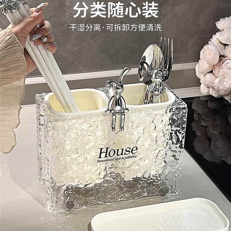 轻奢高颜值筷子收纳盒壁挂筷子筒筷笼家用台面筷子桶筷子篓沥水架