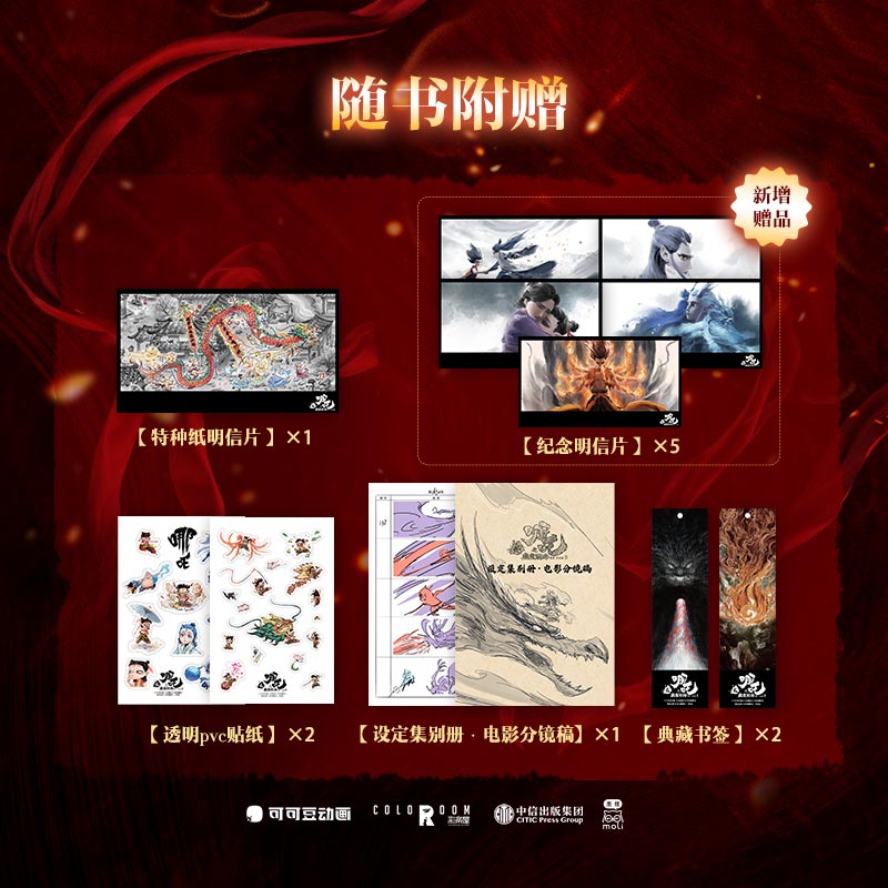 纸质书签×2线稿分镜别册 烫金明信片 魔童降世闹海电影创作资料 赠透明PVC贴纸×2 哪吒之魔童闹海艺术设定集