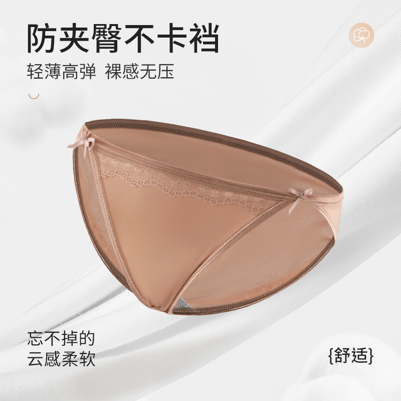 大码 无痕透气亲肤薄真丝莫代尔三角裤 女 蕉内银皮500E女士内裤 3件