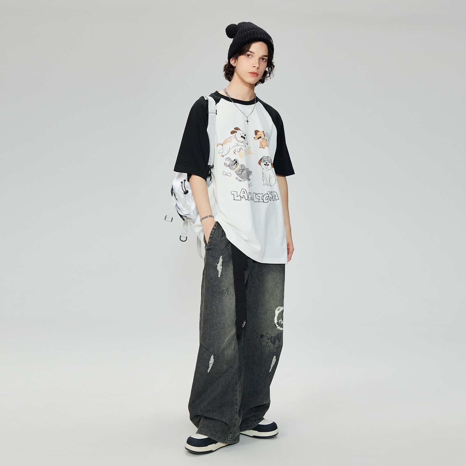 短袖 宽松加肥加大胖子休闲男装 t恤男士 潮牌满印半袖 夏季 摩朝大码
