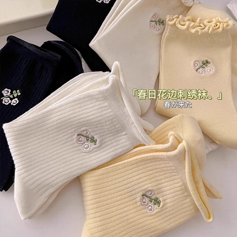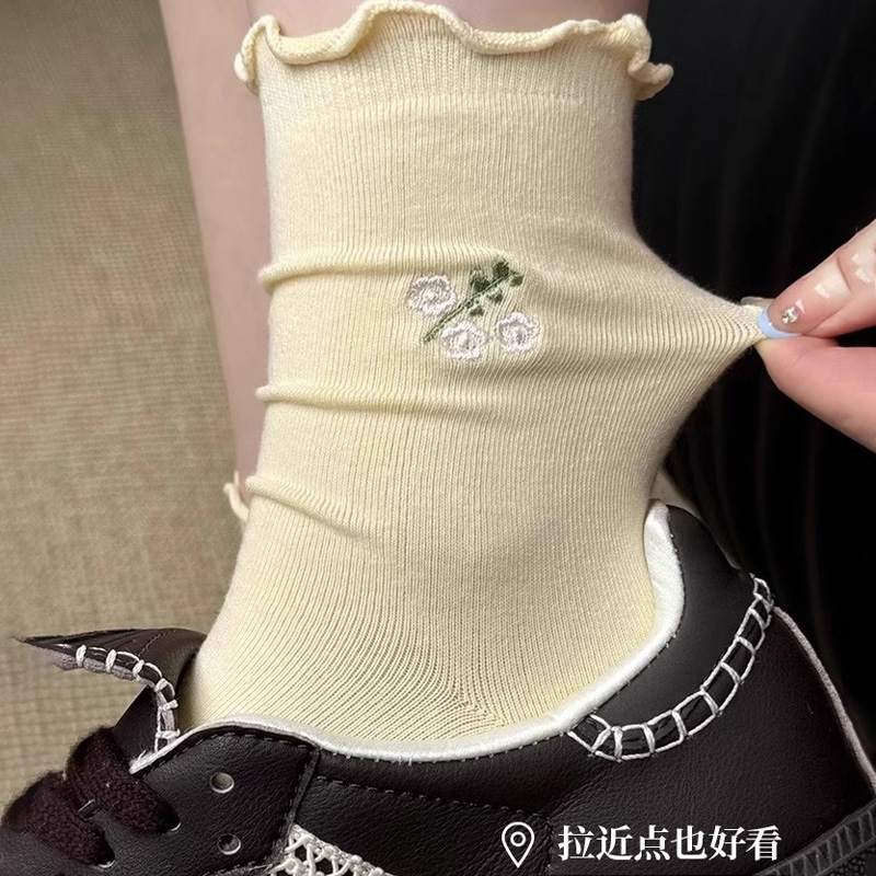 乐福鞋 黑色袜子女中筒纯棉秋冬季 堆堆长袜搭配小皮鞋 爆款 2025新款