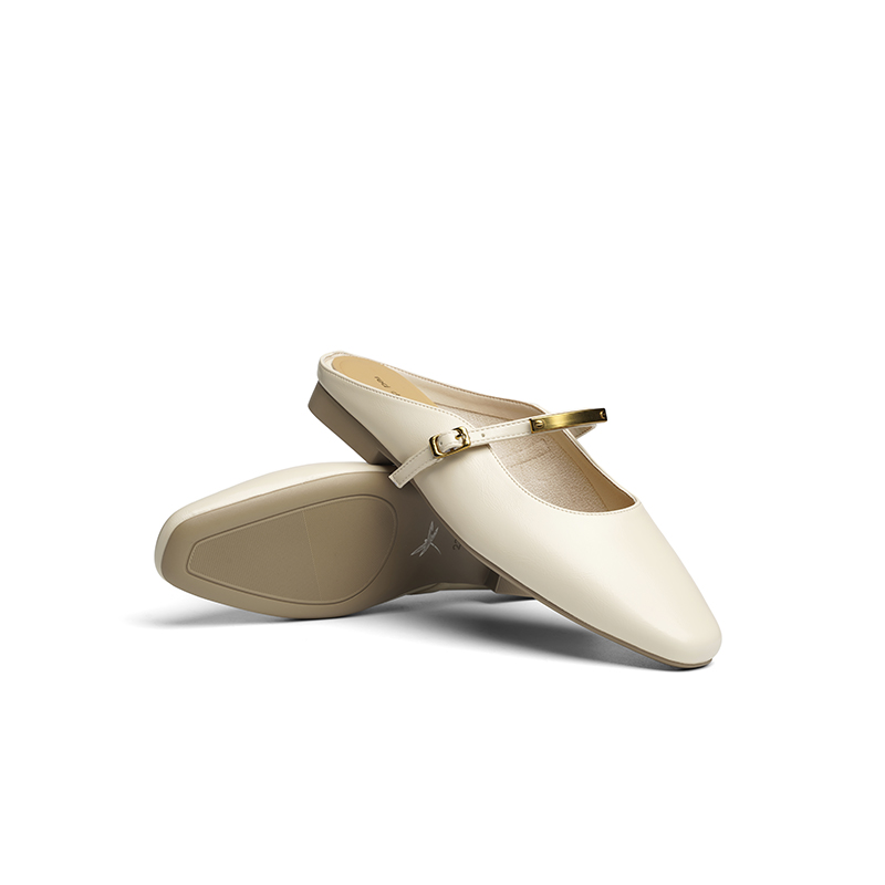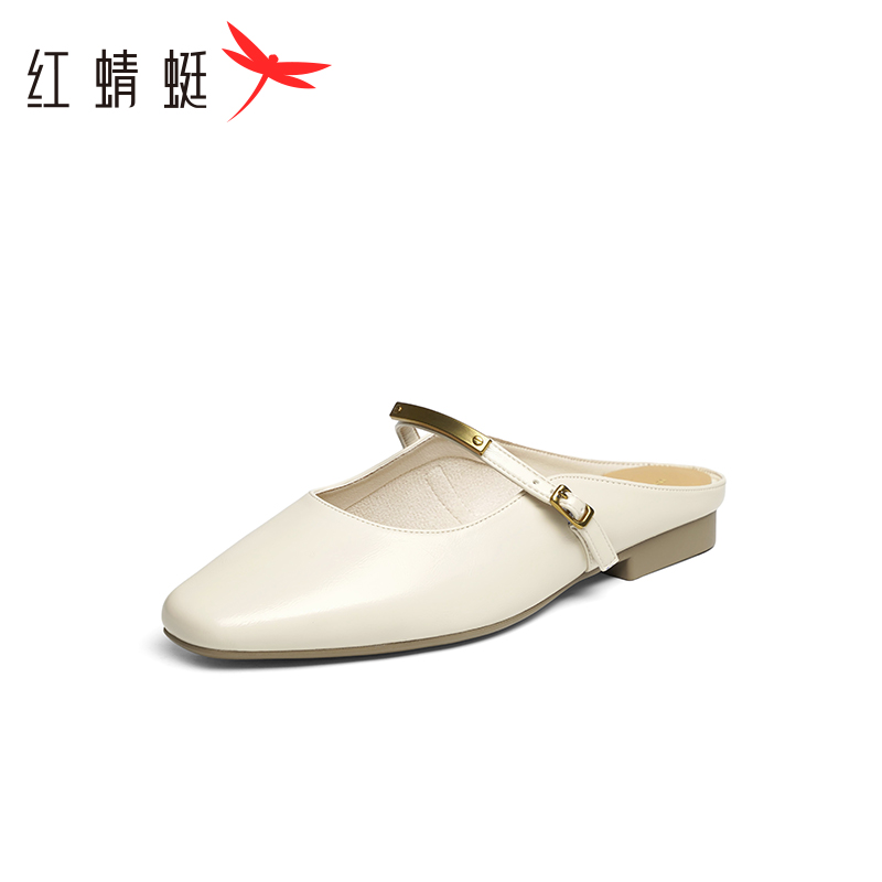 女2025秋季 子白色穆勒拖单鞋 新款 包头半拖鞋 一脚蹬女鞋 红蜻蜓拖鞋