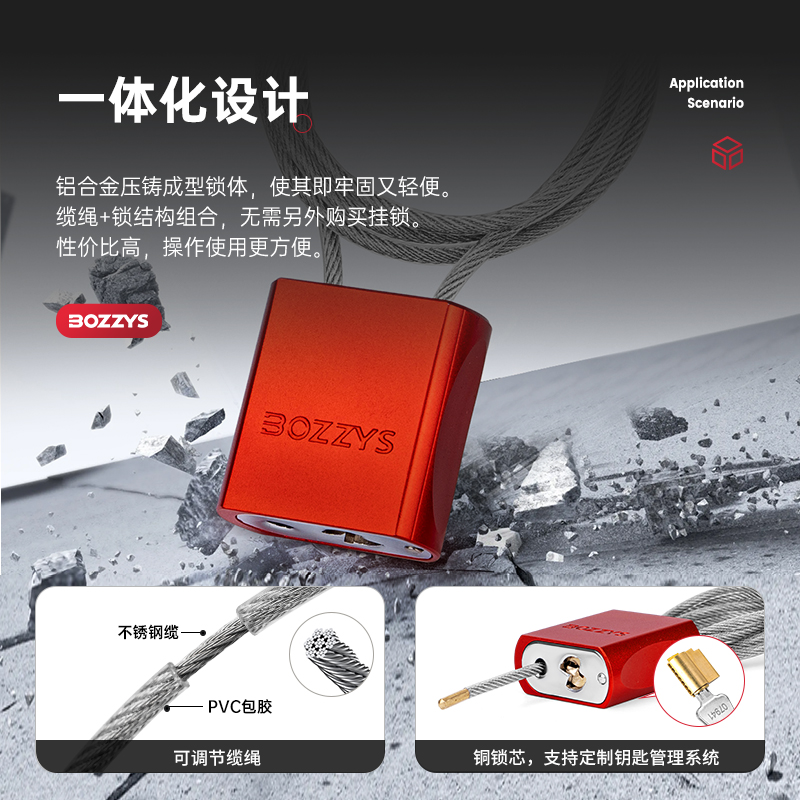 BOZZYS户外可调节缆绳挂锁铝合金缆绳锁电动自行车公寓民宿安全锁