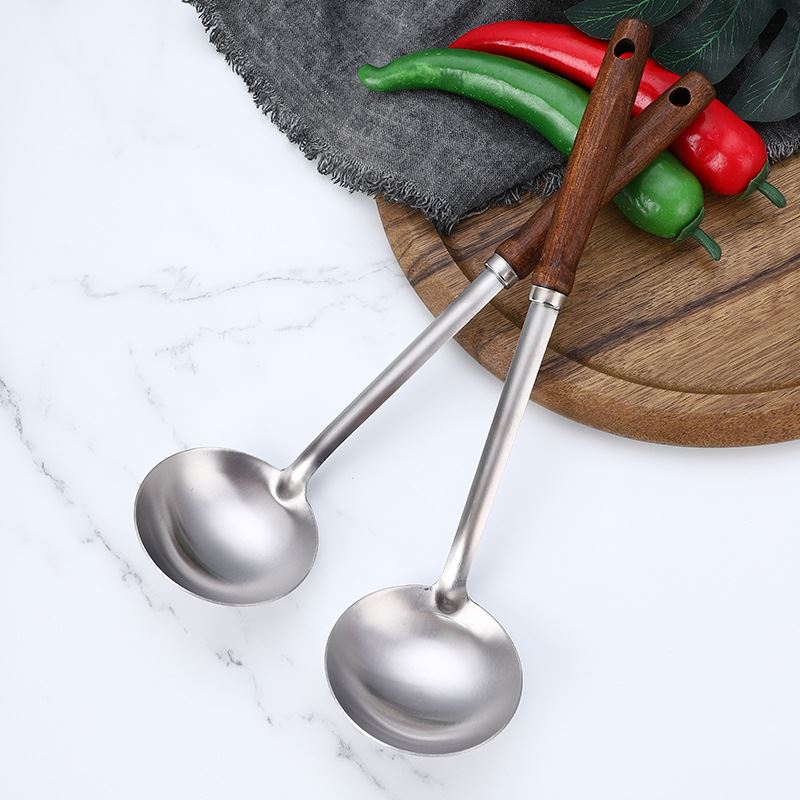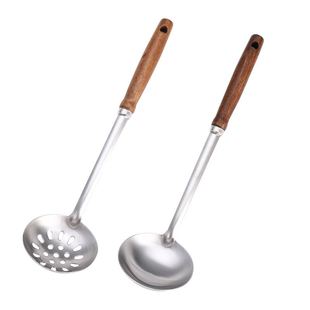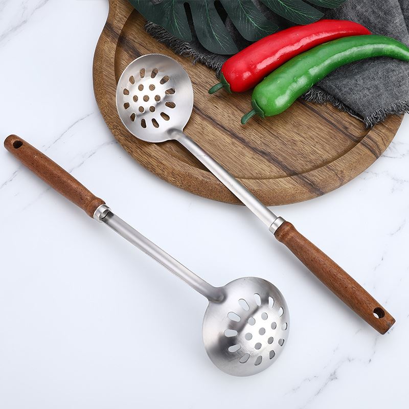 201不锈钢汤勺家用木把手厨具炒菜漏勺加厚长柄厨房小工具