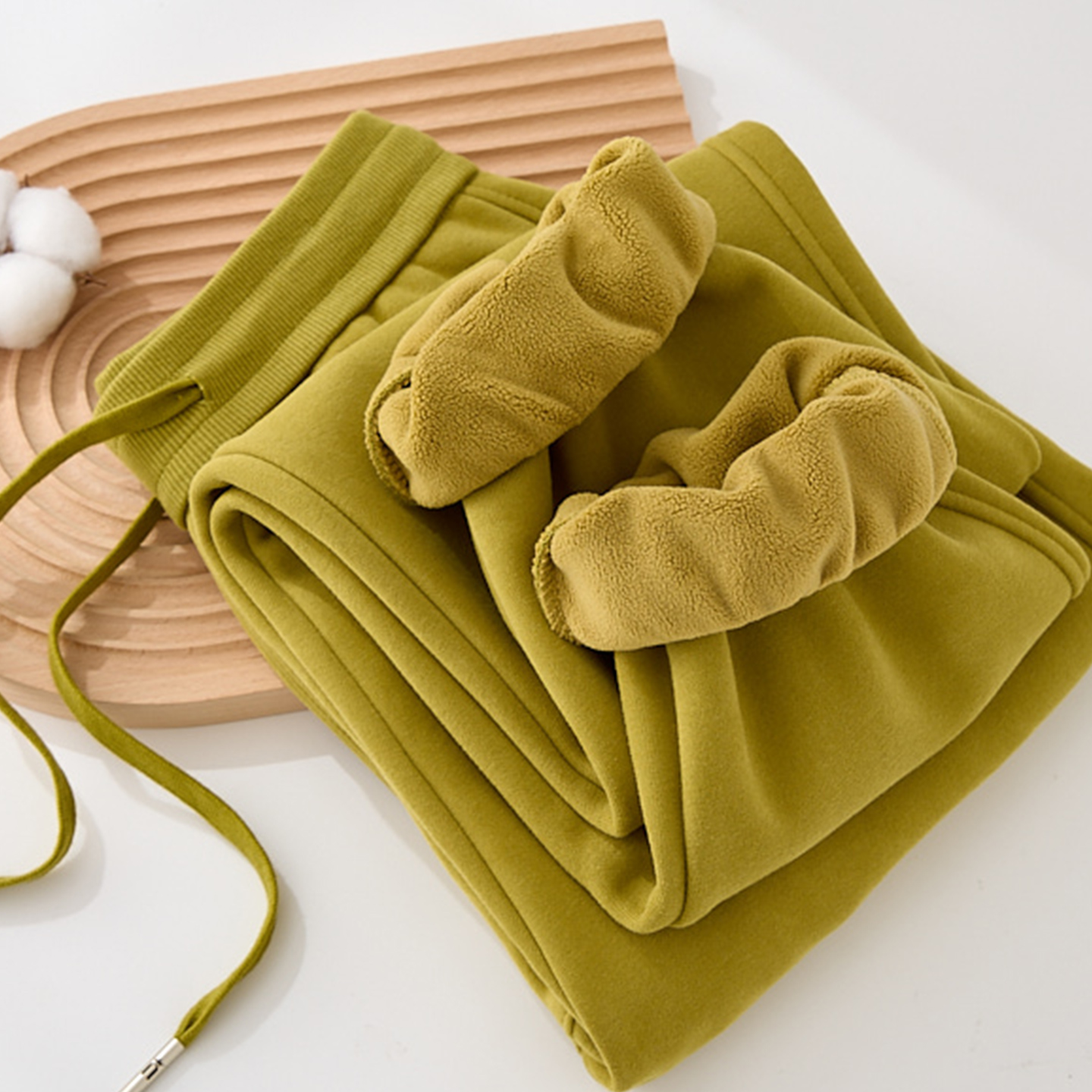 加绒街舞穿搭褶皱宽松休闲长裤 女秋冬季 子 灰色运动卫裤 自然涩美式