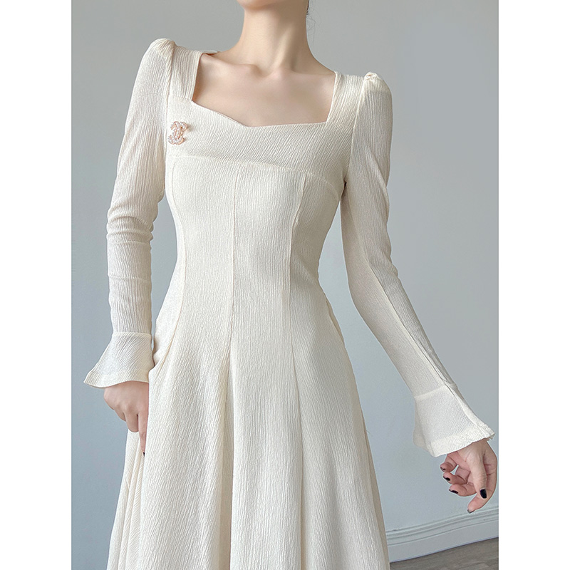 藏蓝色假两件厚款 女秋冬超长裙1111 气质高级感连衣裙2025新款