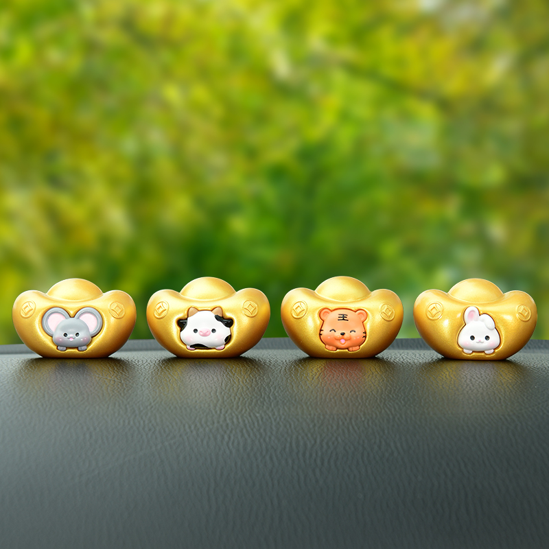 可爱十二生肖元 宝小动物鼠牛虎兔蛇马羊狗猪汽车摆件男女2025新款