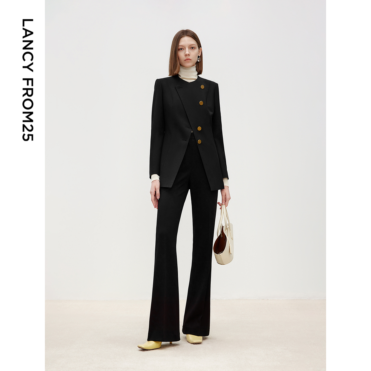新款 装 高智气质设计感修身 裤 女 短外套 朗姿纯羊毛黑色2025年春季
