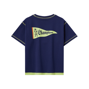 休闲百搭运动球衣短袖 Champion冠军男童装 潮流经典 新款 T恤 25夏季