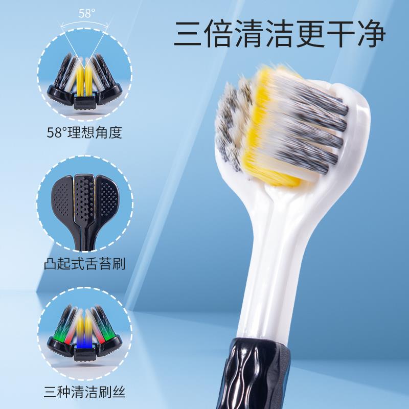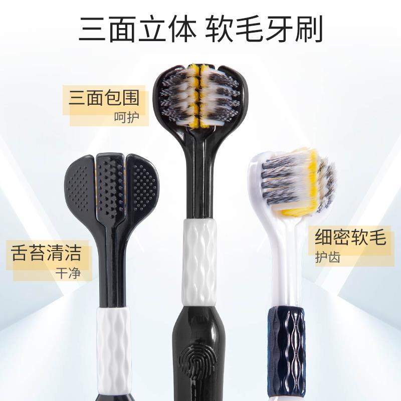 情侣 三头家用家庭装 三面牙刷成人软毛牙刷专用男士 女u型3面包裹式
