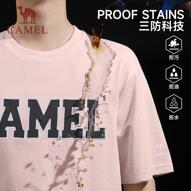 棉感防水防晒宽松上衣男 新款 骆驼户外运动短袖 T恤女2025春夏季